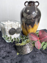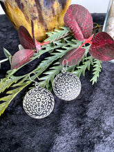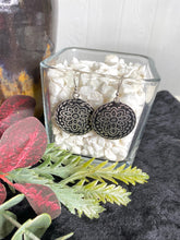 Silver Patina Earrings - Black Floral Circle